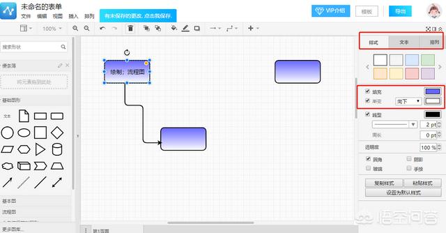 6.还可以对流程图图形背景颜色进行添加,在右侧的工具栏中会出现样式操作,选择样式下方的填充选项即可进行选择。