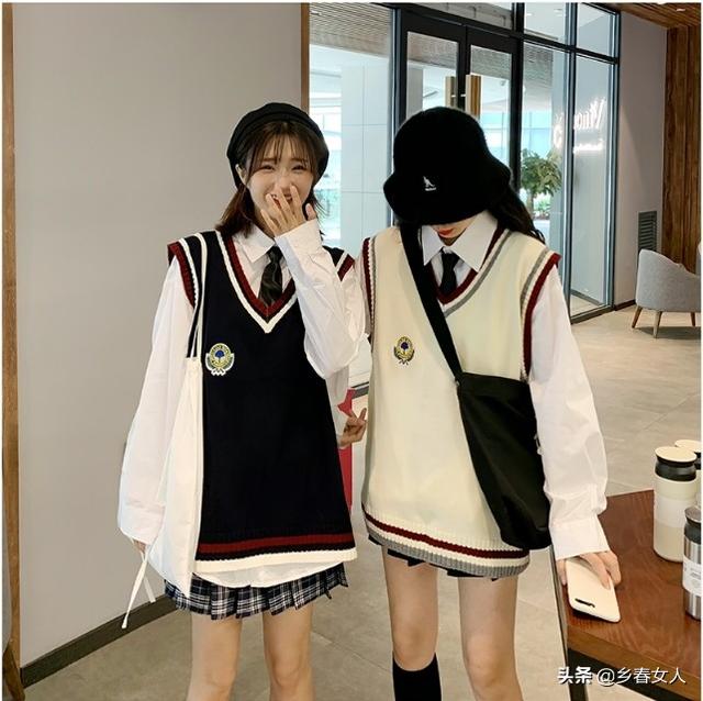 第三 这一套jk服饰也很有意思,宽大的针织背心儿,搭在外面。简直就是我们的很普通的一套搭配,真没想到这也是一套jk服饰。