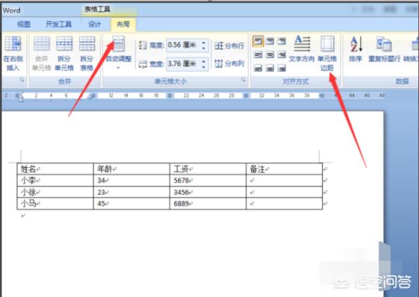 1、打开word2010表格文档,进入后单击布局功能区中选择单元格边距按钮选项。