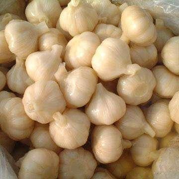步骤一:把新鲜的大蒜去掉外皮和根部,留下里面的两层嫩皮,大蒜顶部的剪掉不要留太长的梗。