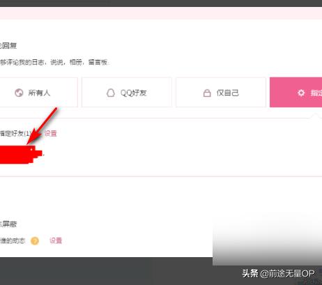 7选择确定之后会回到刚刚所设置的页面,此时就可以看到会显示”指定好友“多少人,然后在下方会有好友列表,这就说明已经设置成功了。