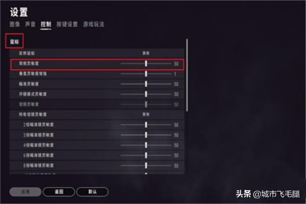2、在控制设置界面,我们首先对鼠标灵敏度进行设置,常规灵敏度建议设置为52,其它鼠标灵敏度选择默认就可以了。