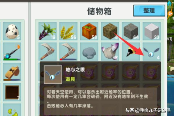 5、然后就是把地心之眼拿在手里右击放飞,在地心之眼垂直下落的位置一直往下挖,可以找到地牢。