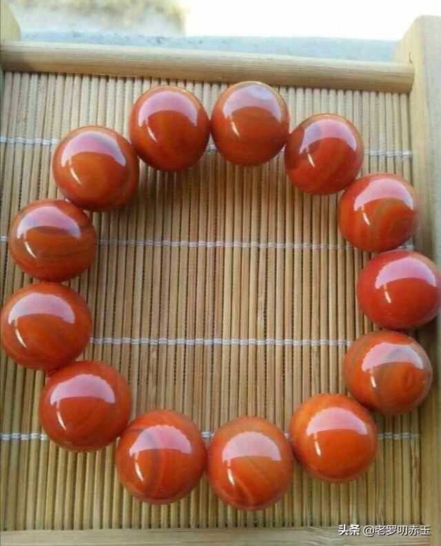 这是一串注的樱桃红,当初是一玉友想要一条柿子红的货,我就自荐帮他搞得一条颜色还不错的货。