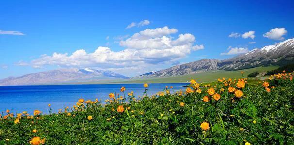 新疆的赛里木湖给人的第一印象总是让人惊喜,湖水与蓝天的呼应,鲜花与草坪的相衬,都是那么让人感到无比舒心了。