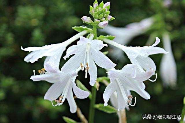 三、玉簪。玉簪也是一种美丽且耐阴的观叶植物,它喜欢比较阴凉湿润的环境,在全日照环境下叶片容易发黄,所以也比较适合室内栽培。玉簪虽然怕强光,但有着较强的耐寒能力,在我们国家大部分的确都能在露地越冬,它的叶片在低温中会枯萎,但是地下部分仍然活着,来年气温回升就会萌发新芽。