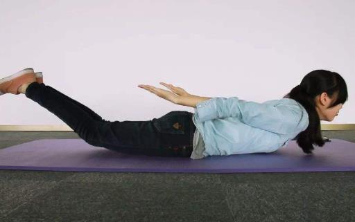 俯身躺在床上,双手放在自己的背后交叉,膝盖尽全力伸直,做好准备动作之后,就可以开始了。头部和腿部尽力向着上方翘起,就如同燕子飞翔一般,坚持五秒钟左右的时间,然后逐渐放松,如此重复十五遍左右。每天可以进行两次,每次坚持三组,效果更佳。