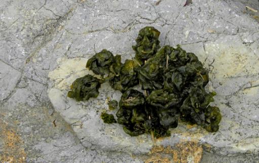 地皮菜: 又名地耳、地衣、地木耳、地皮菌、雷公菌、地软儿、地瓜皮等,是真菌和藻类的结合体,一般生长在阴暗潮湿的地方,暗黑色,有点象泡软的黑木耳。地皮菜富含蛋白质、多种维生素和磷、锌、钙等矿物质,以色列魏茨曼研究的科学家研究发现,地皮菜所含的一种成分可以抑制人大脑中的乙酰胆碱酯酶的活性,从而能对老年痴呆症产生疗效。地皮菜是一种美食,最适于做汤,别有风味,也可凉拌或炖烧,也是寒性食品。