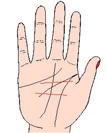 在手掌上有一种线叫(障碍线),它可以障碍气运的顺利展开,这条线表示失败,不如意,损害,离别等苦恼;有的很短而且在越过细小的结婚线;更有出自金星丘的又粗又长的线,出自金星丘的障碍线连接於结婚线,表示婚姻将以不幸场面结束,这条线如越过命运线,在职业或家庭生活会发生纠纷,总而言之,这条线表示气运发展受障碍,在手相上至为重视。